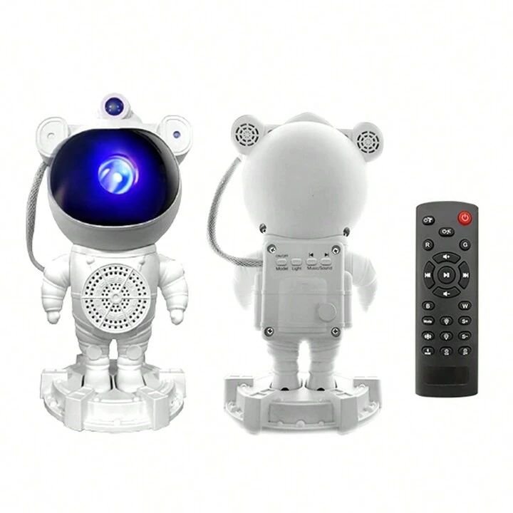 Lámpara decorativa con diseño de astronauta que proyecta efectos de galaxia y nebulosa en techos y paredes. Crea un ambiente relajante y mágico con luces LED multicolor y modos ajustables. La cabeza del astronauta es rotatoria, permitiendo dirigir la proyección. Ideal para dormitorios, salas o como luz nocturna infantil. Compacta, fácil de usar y con control remoto para cambiar colores, efectos y temporizador. Perfecta para regalar o ambientar cualquier espacio con un toque espacial.