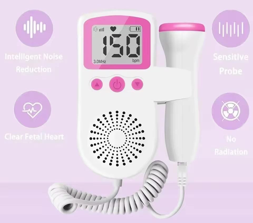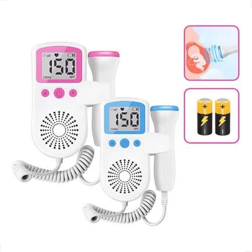 Dispositivo portátil que utiliza tecnología Doppler para detectar y amplificar los sonidos del latido cardíaco fetal. Emite ondas de ultrasonido de baja intensidad que rebotan en los movimientos del corazón del feto, permitiendo al profesional de salud escuchar y medir la frecuencia cardíaca fetal (FCF) desde etapas tempranas del embarazo. Suele incluir pantalla digital, altavoz, y transductor ergonómico. Ideal para controles prenatales no invasivo