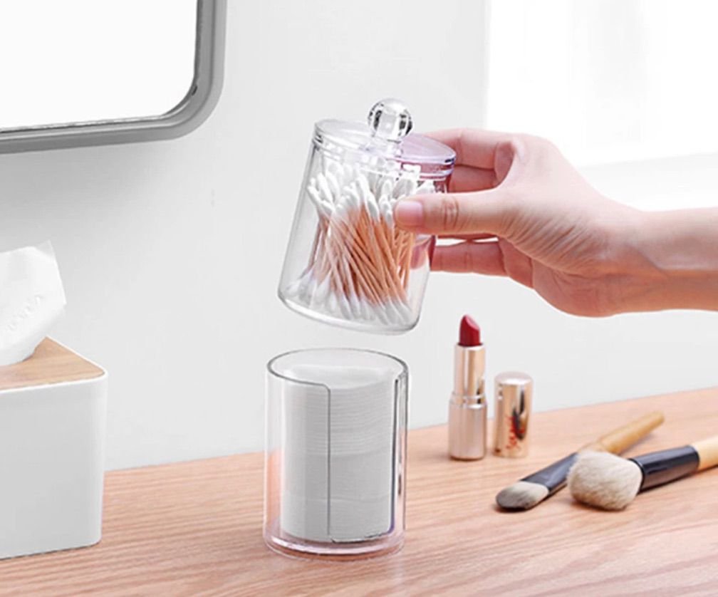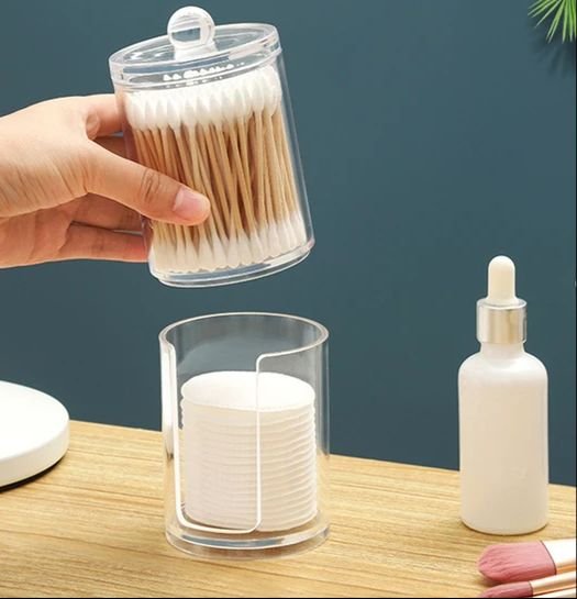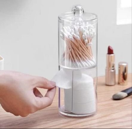 Organizador compacto y elegante, ideal para almacenar copitos, algodones, discos desmaquillantes u otros accesorios de cuidado personal. Fabricado en acrílico transparente de alta calidad, permite visualizar fácilmente el contenido y mantener todo al alcance. Su diseño moderno y minimalista se adapta a cualquier estilo de baño, tocador o habitación. Resistente, fácil de limpiar y con compartimentos prácticos que optimizan el espacio y mantienen la higiene.
